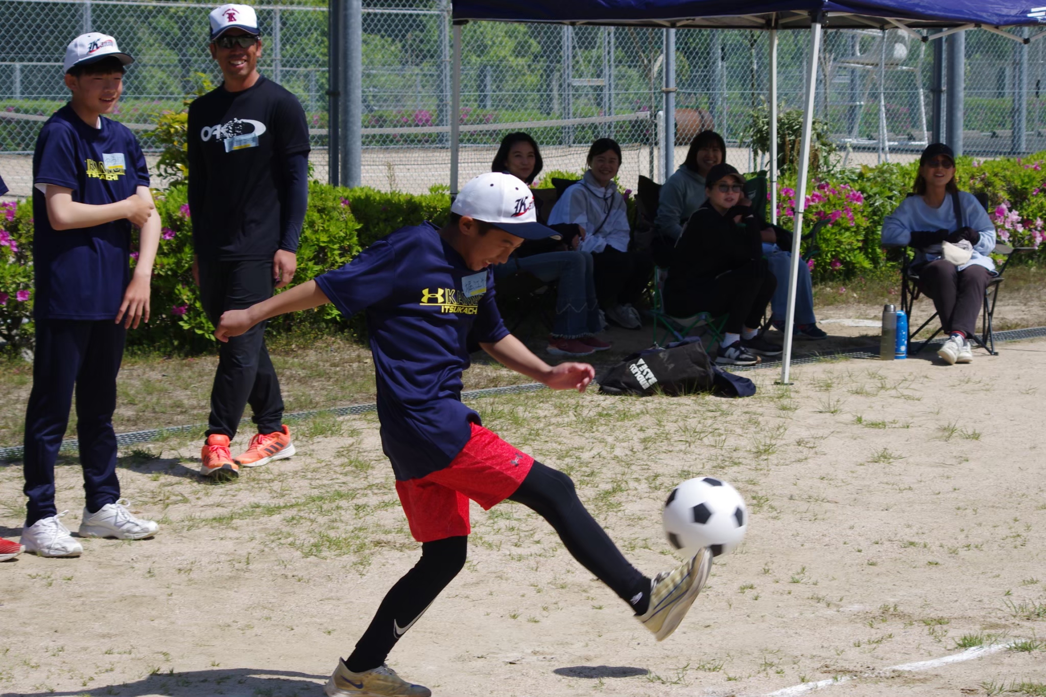 まずは自己紹介タイムからスタート。 その後は、5チームに分かれてキックベースボール大会予選をおこないます。 昼食を挟んでキックベースボールの決勝にリレー、ビンゴゲームで盛り上がり、自然と打ち解けることができました。